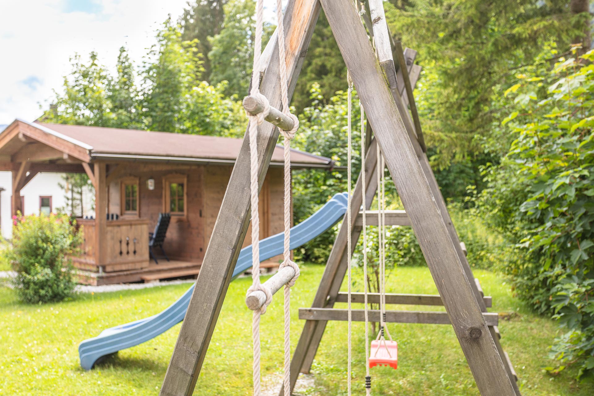 - Liegewiese mit Gartenhaus und Kinderschaukel, Grillmöglichkeit (Griller vorhanden)